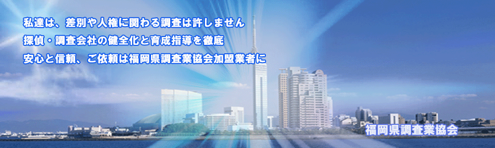 福岡県調査業協会は、情報化社会に於ける探偵調査業務の適切な運営を確保して、健全な探偵,協会員の育成と指導、社会的地位向上に努め、地域社会の発展に寄与することを目的として設立されました。